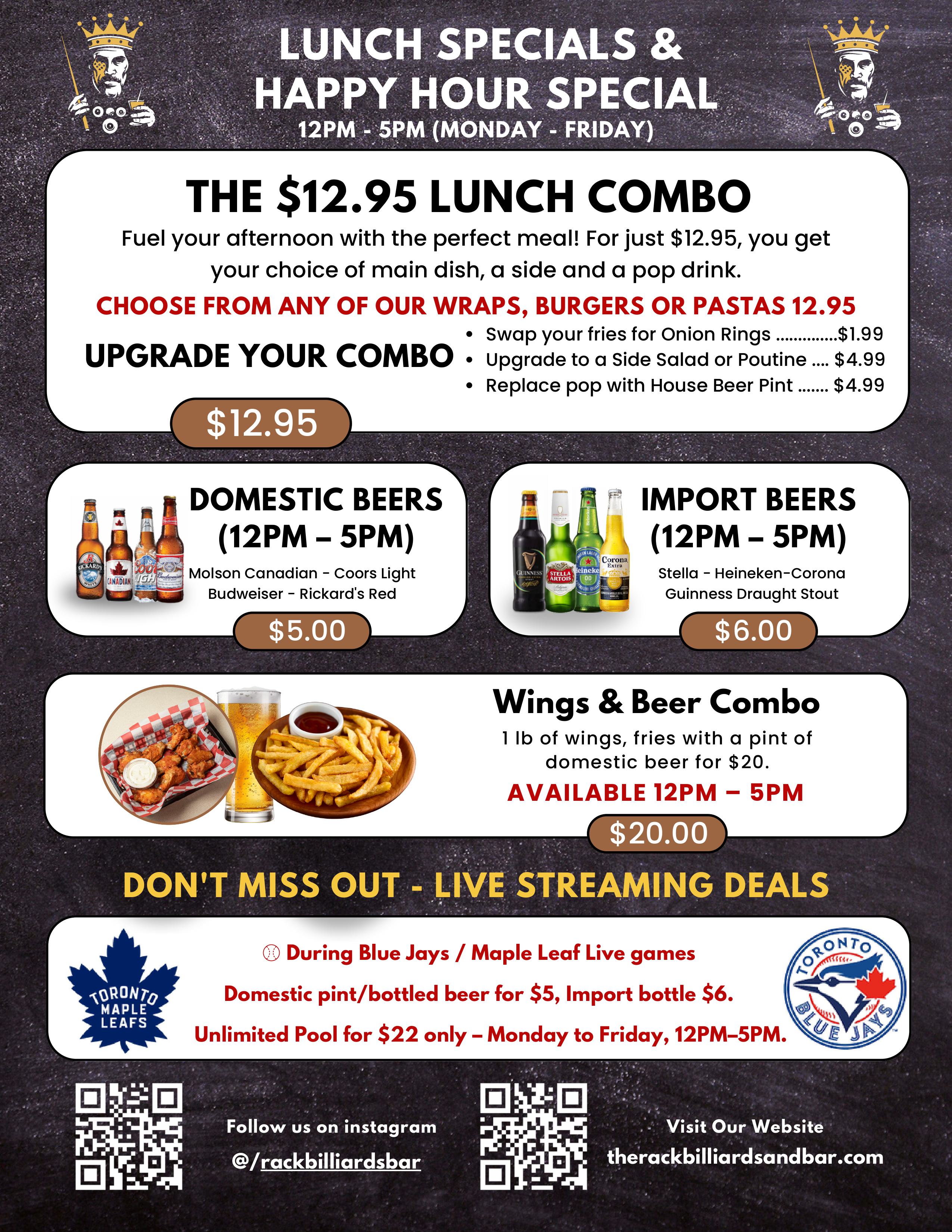 Lunch Specials & Happy Hours Specials.